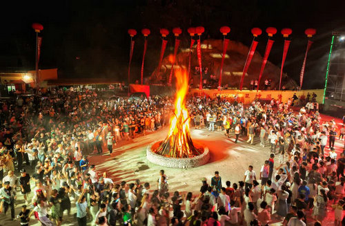 “又是一个把你双眼点燃的七月, 又是一个把你心灵点燃的七月, 骑上你的骏马穿上美丽的衣裳,,小伙姑娘一起走进爱的火把节。”随着动听的歌声,8月12日,2023石屏彝族火把节在古蔺县石屏镇雷火坪主会场开幕。活动期间,举行了各类文艺演出、火把节篝火晚会、彝族传统选美大赛、传统体育竞技、斗牛争霸赛等一系列活动。