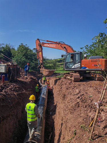 “这是兆雅镇古佛村委至云锦镇观音山清水池管道施工现场,该工程属于泸县供排水一体化项目-泸县农村供排水改扩建工程一标段(一批次)项目建设内容,由泸县顺通水务有限公司融资贷款3500万元,建设管网全长15km,设计为800mm的内外涂塑无缝钢管,厚度为10mm。于8月31日进场进行清表工作,9月8日开始沟槽开挖,9月9日开始管网焊接作业,预计完工时间为12月中旬。”泸县供排水一体化项目现场负责人万军介绍。