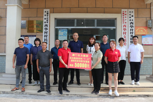 四川新闻网消息 9月19日,四川省侨联党组成员、秘书长黄灏,泸州市侨联专职副主席邹夏,澳门百力集团四川力酱酒业相关负责人一行到古蔺县永乐街道西华村开展灾后帮扶工作,百力集团定点向永乐街道西华村灾后重建捐款5万元,古蔺县政协副主席王从静,县侨联、永乐街道相关人员陪同。