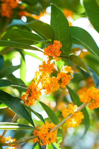 园区内的桂花种类繁多,有金桂、银桂、四季桂等品种。全村种植有桂花树2万株。时下正值桂花盛开时节,乡间处处弥漫着桂花沁人心脾的芳香。数名农户手中拿着长长的竹竿,正忙着赶花期“打”桂花,用以制作桂花产品。