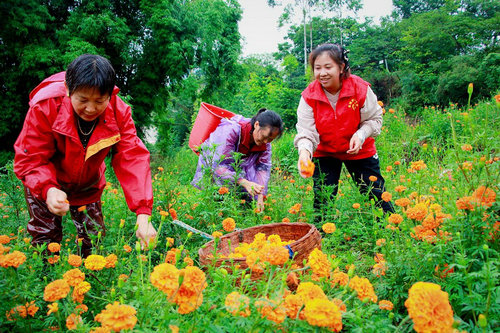 “采摘万寿菊一定要选在开得最灿烂的时候,这样花型才更好看、品质也更好。”正在采菊的村民姜光春介绍道,自从村里大力扶持发展万寿菊产业,不仅助力村民们实现了就近务工,同时还带动了村民共同种植万寿菊,找到了增收致富的“黄金路”。
