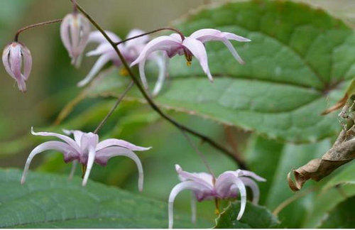 淫羊藿又名三枝九叶草,它的花在春天盛开,萼片两轮排列,内轮呈花瓣状,萼片内花心部分隐藏着4枚花瓣,宛如一位美丽的带有翅膀的天使精灵。淫羊藿是一味珍贵的中药材,具有补肾壮阳、祛风除湿的功效,淫羊藿的药用部分主要是茎叶,茎叶晒干后可入药、可泡茶,每年10月就是淫羊藿叶片采收的季节。