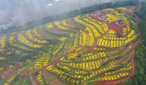 四川新闻网消息 十月秋风爽,香山菊花香。走进泸州市古蔺县彰德街道香山乡贤产业园,阵阵花香沁人心脾,放眼望去,一簇簇金丝皇菊迎风绽放,山间叠翠流金,一幅美丽的金色“丰”景徐徐展开。