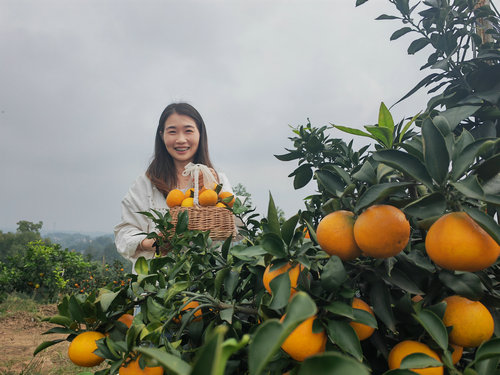 “今天看到天气特别好,然后就约了两个朋友,在这个柑橘园想摘一点桔子,因为最近听到说这个爱媛熟了,进来真的很多很多,然后还可以品尝,我们划了一个,桔子的汁水很多,味道也酸甜可口很好吃,我们准备多摘一点,跟家人朋友孩子带点回去吃。”来自重庆市永川区的游客杜飞说。