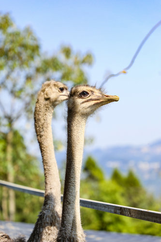 走进鸵鸟养殖基地,高大健壮的鸵鸟在温暖的阳光下俯下身子津津有味地吃食,场面煞是壮观。