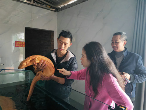 为了更好的开展养殖工作,2021年7月26日,泸县友鲵水产娃娃鱼养殖场更名为泸县宝藏大鲵水产养殖有限公司。目前,杨建章联合全国四家养殖场、两家繁殖场,成立了一家专业合作社,实现了资源共享、技术共享,抱团闯市场。