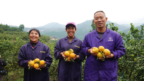 据悉,柑树“盖被”后,种植户还可根据椪柑的成熟度和售卖情况自行控制每天的采摘量,极大限度保证了每颗果子的品质。得益于乡村振兴的四川省金土地工程,永吉村完善了旱地坡改梯、生产路和农渠等基础设施,321国道贯穿永乐街道,便捷的交通运输和良好的口碑,让“永吉椪柑”供不应求,很多农户在自家门口就可以把果子卖完。