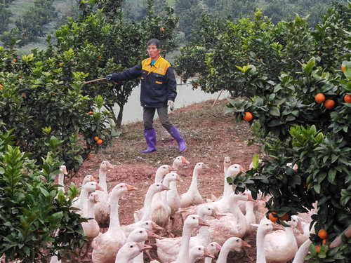 “今年,我们积极探索‘橘树+’立体生态种养模式,在150亩砂糖橘林里分批次养殖了10万只大白鹅,鹅以林间丰富的杂草、昆虫为食,可减少除草剂使用,提升砂糖橘品质,同时,鹅的粪便与草渣、树叶发酵成为有机肥,进一步补充土壤养分,促进果树生长,有效提高了土地的综合经济效益。”四川中祥生态农业有限公司负责人钟一富说。