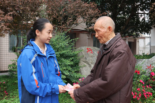 四川新闻网消息 “你要尊敬老师、团结同学、努力学习,克服目前遇到的困难,争取学习成绩更上一层楼,考上好大学。”12月14日,在泸州市纳溪区安富中学操场旁边,爱心老人王远宽为该校八年级三班学生袁一萍送上500元助学金和暖心的嘱咐。