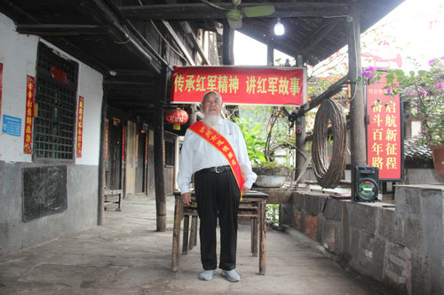 胡敬华是红军战士后代,他的父亲在一渡赤水时负伤,最后留在太平镇。胡敬华的家在太平古镇边缘离四渡赤水纪念碑最近的地方,是古镇旅游要道的必经之地。“古蔺县太平镇是国家历史文化名镇,也是红军长征四渡赤水二渡、四渡重要渡口。很多游客对发生在古镇的故事非常好奇,但无从了解,胡敬华老人经过一番思考,决定在古镇义务为大家讲红色故事。刚开始家人、亲朋好友都觉得他是一时兴起,坚持不了多久……”太平镇长征街社区党支部书记陈杨梅说道。