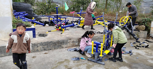 观文镇民乐村位于古蔺县南部,属于典型的高山村,随着脱贫攻坚与乡村振兴的推进,村内水、电、路等基础设施极大完善,但群众精神文化生活相对比较单一,为了丰富群众精神文化生活,推广全民健身与群众体育,民乐村村两委和驻村工作队积极链接资源,乡贤曾凡志主动捐赠了价值1万余元的体育器材。
