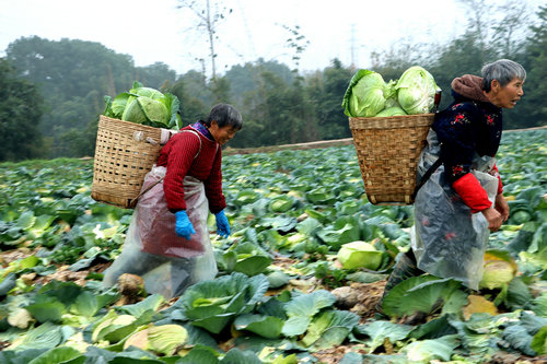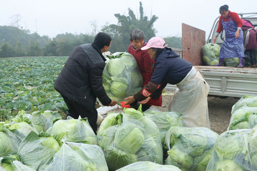 “今天早上我们要采收1500斤卷心菜和500斤花菜,都是今天早上客户下的单。”蔬菜基地管理人员何远琴一边分拣着卷心菜一边说,“今年我们基地采取的是订单销售的模式,收到商家的订单后,我们马上组织工人进行采收,这样既拓宽了销路,又保证了菜品的新鲜。这个季节主要采收卷心菜、花菜和棒菜,每天能采收5000斤左右。”