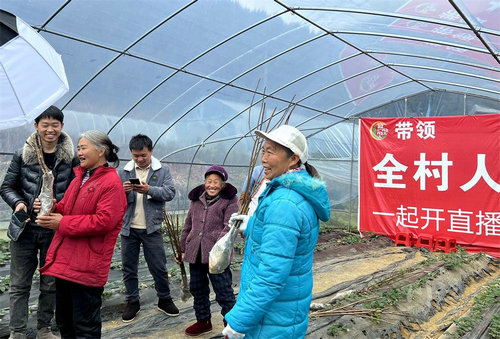 四川新闻网消息 “农户最怕辛苦种出来的农产品卖不出去,没想到通过直播销售的方式,几个大棚的草莓全部被抢购光,这几天都‘不敢’再播了。”1月3日,泸州市古蔺县新的社会阶层人士皇华镇熊坚坚草莓基地,10多位村民又在准备直播。