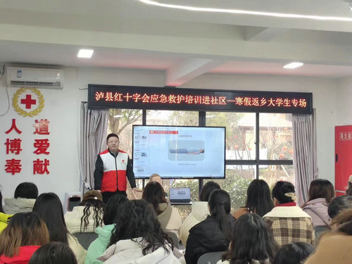 1月29日,利用春节前夕大学生、农民工返乡的良好时机,泸县红十字会、玉蟾街道朝阳社区联合开展了为期一天的红十字救护员培训春节专场,返乡大学生、返乡农民工共60人参加,提升辖区各类人群的急救知识和能力、传播红十字人道、博爱、奉献的精神。