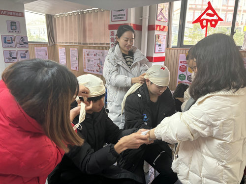 红十字救护师资谯霞、石龙炀、杨崇燕等讲师分别从红十字文化运动知识救护概论、气道异物梗阻、心肺复苏、AED使用、创伤救护、出血与止血、伤口包扎、骨折固定、踝关节扭伤、烧烫伤、特殊创伤等救护知识作深度分析和演示培训。
