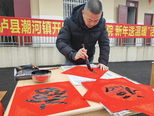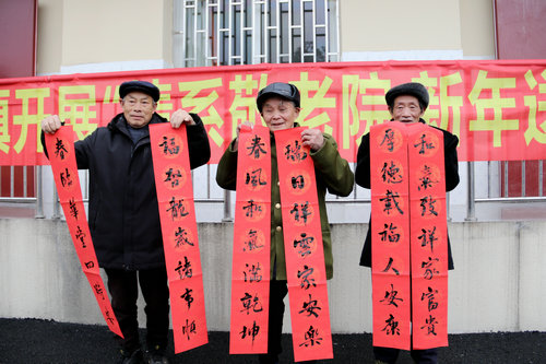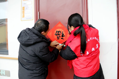 “和气致祥家富贵,厚德载物人安康。”“瑞日祥云家安乐,春风和气满乾坤。”书法老师们挥毫泼墨为老人们免费写春联和福字,志愿者与老人们一起将春联和福字贴在门上,一对对充满节日气息的春联,一幅幅饱含深情的“福”字,让老人们切实感受到传统文化的魅力,营造了浓浓的节日氛围。