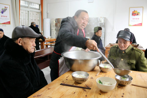 | 老人们吃热气腾腾的饺子(李平摄) |