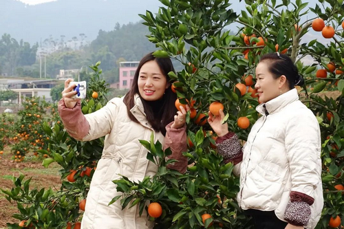 游客们络绎不绝,一边采摘,一边拍照,一边品尝饱满多汁的血橙,充分体验劳动的乐趣,享受着安逸的田园时光。“难得今天天气好,我约了朋友们一起过来采摘一些回家,这里的血橙酸甜细嫩,特别巴适,正是我喜欢的口味。”游客江珊惬意地说道。