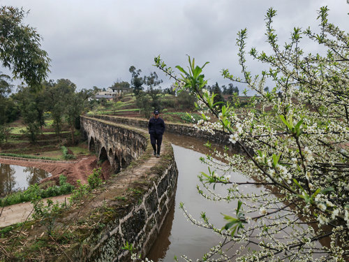 | 村民巡察渠道放水情况(曾佐然摄) |