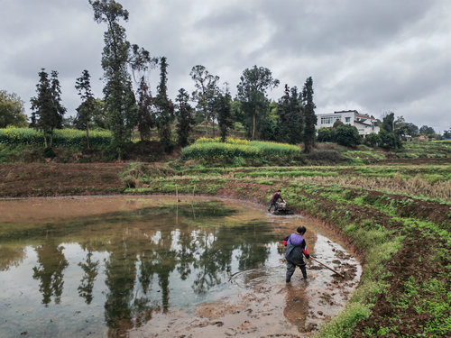 | 村民抓住放水机会耕地,为春耕作准备(曾佐然摄) |