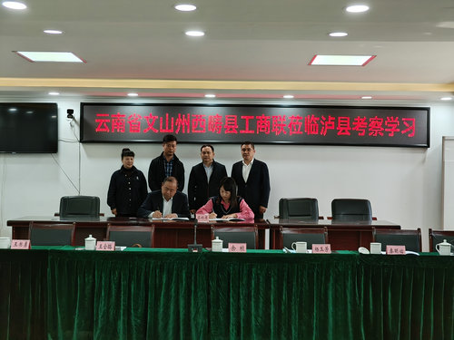 考察组一行听取了泸县商会建设工作情况介绍,参观了泸县云龙商会办公阵地,详细了解了泸县商会建设运营、基层商会发展及作用发挥情况。随后,召开两地工商联(商会)座谈会,泸县县委、西畴县县委领导具体介绍了两地县域经济发展情况;泸县工商联同西畴县工商联就两地推进产业发展、加强项目合作等方面签订友好工商联战略协议;云龙商会会长陈登树作了交流发言。