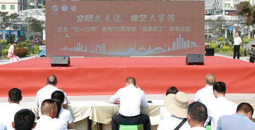 四川新闻网消息 4月28日,由中共泸县县委统战部、县侨联举办的“文明我来说 曲艺大家演”、纪念“五一口号”发布76周年暨最美职工颁奖仪式在泸县音乐广场举行。泸县县委常委、统战部部长、县总工会主席王先奎出席仪式并致辞。