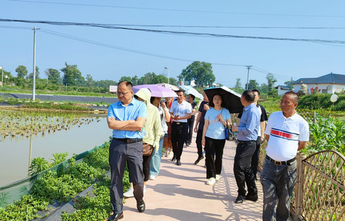 调研组一行首先到“巴蜀鱼米之乡玄滩示范区”进行实地走访,听取泸县海牧专业合作社理事长高大伦关于龙凤村稻虾产业发展情况的介绍,详细了解了“3411稻虾共作”和“双稻双虾”两种种养模式的产业基础、机制优势、发展模式、收益前景等。