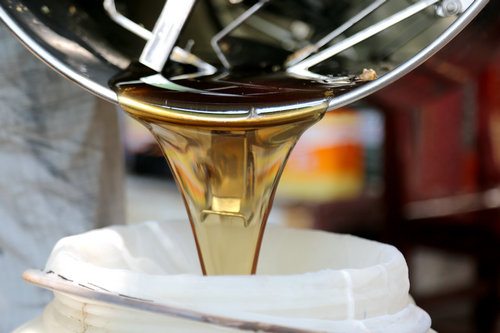 徐怀林小心翼翼地从蜂箱里取出一片蜂巢,用软刷轻轻扫走覆盖的蜂群,然后将蜂巢片放进脱蜜机里旋转。期间他还要注意飞舞的蜜蜂,避免被蜇。初步过滤后,色泽金黄、通透浓稠、香甜可口的龙眼蜜就可以装瓶了。