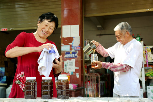 风调雨顺,为徐怀林的甜蜜事业带来了丰收保证。同时,采收蜂蜜也是一项需要耐心的技术活儿。