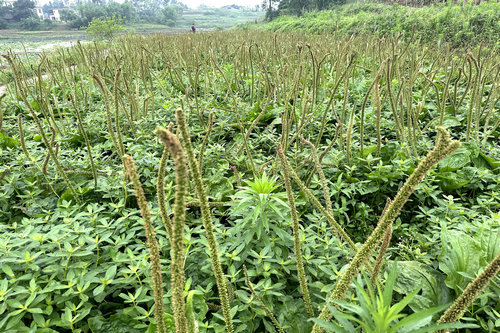 “这片田里的车前草至少有50厘米,长得特别茂盛,就是用干粪来施肥的,再长一段时间就可以收割了。”赵岩村村支书许世平说。