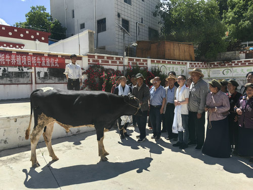 四川新闻网消息 “这些牛就交给你们了。”6月3日,泸州市第七批结对帮扶乡城县工作队的队员蒋林在乡城县正斗乡永德村委会的广场上将牛交给了永德村。这也标志着这个村集体经济项目正式投产。