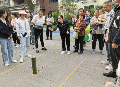 活动开始,社区党委书记李兰向大家作节日致辞,泸县人民医院医生带领大家一起跳健康操,侨务工作者和侨界志愿者组织居民进行漆扇制作、夹玻璃珠、投壶游戏,通过游戏收集印章,凭印章领取粽子、盐蛋、香囊节日礼包。