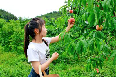 据了解,胭脂桃皮薄肉厚、口口脆甜,绝佳的口感深受消费者喜爱。“‘一树’两色桃,这样的色彩差异,也加深了游客采摘的惊喜和乐趣。”泸县石桥镇兴盛村新乡贤、桃园管理员邓毓友介绍。在为桃子套袋的过程中,自己专门选择了白皮袋和牛皮袋两种颜色,待桃子成熟后,白皮袋里的桃子颜色红粉诱人,牛皮袋里的桃子颜色则呈现出淡黄色,不同颜色的桃子,总能给人不同的采摘体验。行至桃树下,随手撕开一个纸袋,果形饱满、红艳灿烂的胭脂桃便呈现在眼前。用手摘下,咬上一口,鲜甜浓郁、香气四溢的桃汁瞬间弥漫开来,让人尽享舌尖上的美味。