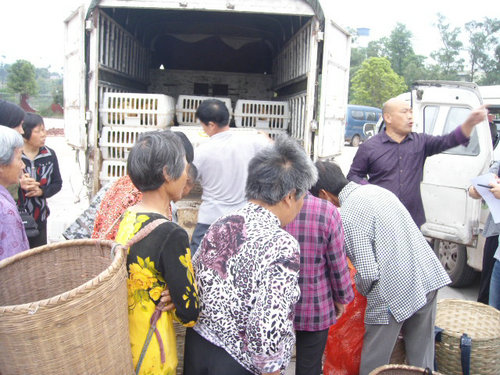 四川新闻网泸州5月5日讯(杨尼娜)5月5日上午,龙马潭区商务局出资为来龙社区42户建档立卡贫困户赠送鸡苗1000只、鸭苗1000只,帮助他们发展养殖业。