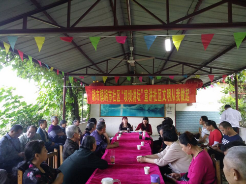四川新闻网泸州5月16日讯(田洪平)为深入贯彻落实胡市镇党委会议精神,加深胡市社区党员对社区创建文明城市工作的认识近日。胡市镇胡市社区开展“坝坝讲坛”群众宣讲活动。