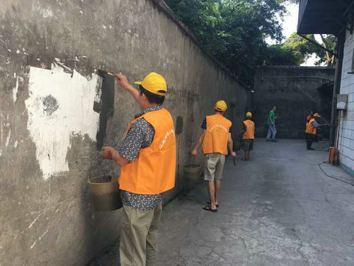 龙南社区经过多方考证,决定自制既方便又价格低廉的水泥浆治理“白补丁”。于是,5月17日开始,龙南社区集中整治老旧墙体“白补丁”的行动开始了,预计整治面积将超1万平方米,力争在最短的时间内,用最低的成本,取得最大的整治效果,为创文迎检夯实基础。(红星街道供图)