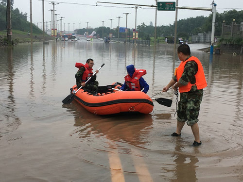 上午,泸州市消防支队119指挥中心接到报警称,因雨势过大,泸州市龙马潭区安宁与石洞交界处发现数名群众被困,而水势还在不断上升,情况万分危急。接到报警后,石洞镇(片区)消防队立即出动8名消防队员携带抗洪抢险装备赶赴现场实施救援。到达现场后,经过简单的现场侦查并了解现场情况后,消防队员立即驾驶橡皮艇带着救生装备驶向被困群众。经过近2个小时营救,6名被困群众全部脱离险境。与此同时,现场消防队员还设置警戒线,提醒过往的车辆与行人注意安全,并疏散群众30余人。