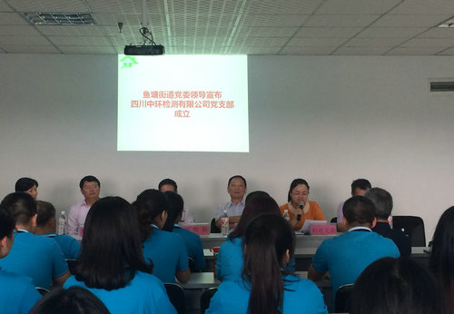 四川新闻网泸州6月29日讯(毛贤蓉)近日,位于鱼塘街道民权社区的四川中环检测公司会议室庄严肃穆,公司党支部成立仪式正在举行,新任职的党支部书记汪萍接过了街道党工委送去的牌子,并发表了任职讲话。街道党工委送去了除了牌子,还有制度、书籍、手册等资料。汪萍说:“党工委送过来的制度和方法让我们知道党支部的工作该如何开展,我们将立即建立党建书屋和党员活动室,定期开展三会一课,让我们企业的党建常态化的搞起来。”