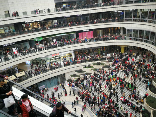 据悉,在截至项目开业当天至12:00短短两小时左右的时间内,开业客流量已迅速超过4万多人次。开业之日正值周末时光,全城万人空巷,都想一睹步步高新天地风采。