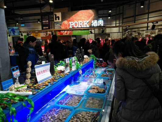 据了解,该项目在湖南已经有16家步步高超市在运营,进入四川亦属首次。该项目的特点是将餐饮引入超市生鲜区,消费者购买了帝王蟹、大闸蟹、波士顿龙虾、三文鱼等海鲜以及牛排等生鲜产品,可以直接在超市内加工并食用,该项目被称为中国超市版的共享厨房。