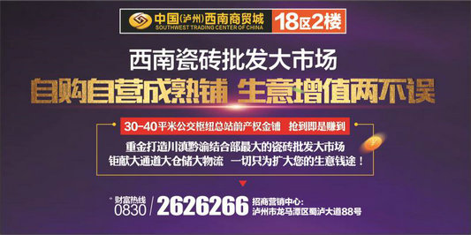 另外,西南商贸城开展了迎春购物月大回馈活动,购铺租铺享特别优惠。自2017年,大批主力商家已进驻,作为泸州老旧商贸市场搬迁承接地的西南商贸城2期16、17、18等副食粮油、汽车用品、家具批发多个大市场也正式建成投入运营。