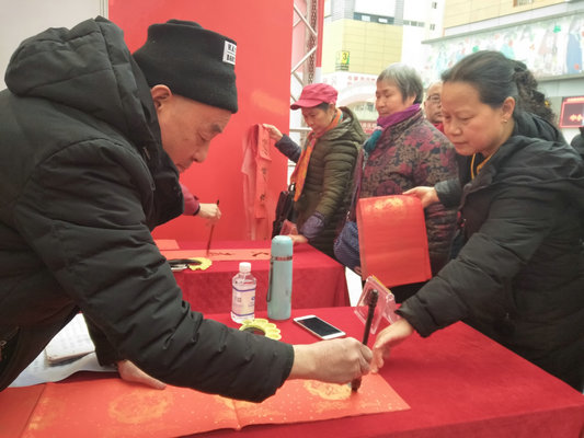 开幕几天来,记者数次前往采访。仅在送春联活动处,就有一批又一批的市民顾客排起长队,等待书法家们写好春联,然后高高兴兴拿回家张贴,准备欢欢喜喜过个年。数位市民朋友对记者说:春节贴春联是传统,现在写春联的人已经不多了,感觉写的春联比买打印的要有意义得多。“送春联”等活动,满足了他们这一传统愿望。