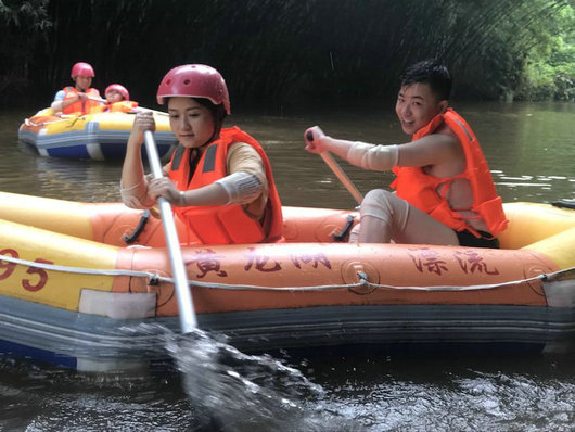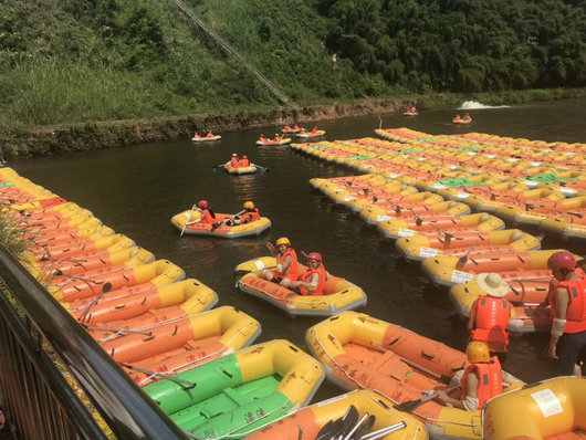 四川新闻网泸州9月12日讯(陈学强)9月初,泸州气温依然高达30多摄氏度,然而位于纳溪区上马镇黄桷坝村的黄龙湖丛林漂流景区却是热闹非凡,许多游客赶着这个夏天“最后”一波热浪前来体验漂流,一批又一批游客乘坐皮筏艇顺着洞沟河漂流而下,欢声笑语响彻云霄。