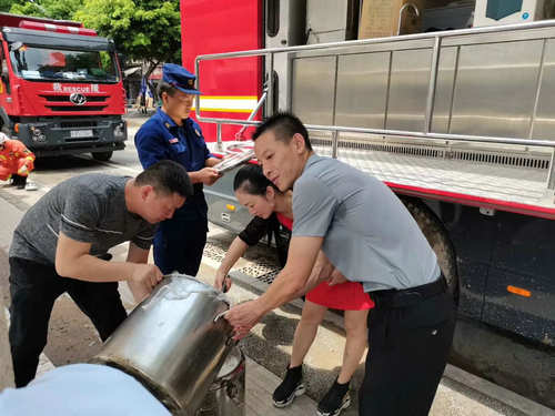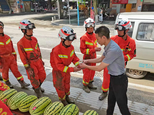 | 龙马潭区爱心企业为远道而来的消防队员们送上西瓜和绿豆汤消暑 |