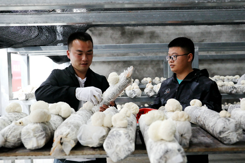 今年年初,枝子园村通过土地流转,在占地856平方米的基地内,试种了猴头菇、平菇、姬菇三种菇,共9600个菌袋,现首批丰收的是猴头菇,其他菌类将陆续成熟上市。