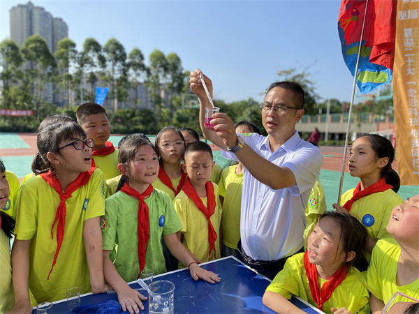 “佩奇校长的探究故事”,在学校掀起了探究之风。在“一升米的‘借与还’”故事中,孩子们懂得了邻里守望、互相帮助的可贵和珍惜粮食、珍爱生活的道理;“‘魔法汤圆’沉浮大揭秘”,孩子们从中学到了物理知识,了解了生活常识;“做一粒温暖的种子”,让孩子们懂得了做文明人、乐于奉献、奋斗奋进的快乐和美好。系列有趣有意的探究,推进形成具有学校特色的“玉你有约”、“琤琤玉声·佩奇加油站”等“双减”活动品牌。