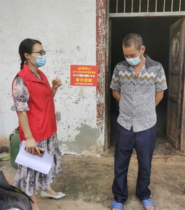 图为贺成贵搀扶行动不便老人进行核酸检测