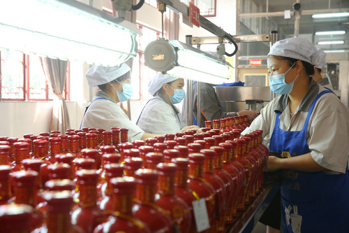 四川新闻网消息 10月21日,位于龙马潭区胡市镇的玉蝉集团有限公司生产车间,工人们精神振奋,干劲十足。在酿造、包装车间,生产线高速运转。在电商直播平台,销售人员精神饱满、妙语连珠。在酿造扩能项目施工现场,机器轰鸣,工人忙碌,一派热火朝天的繁忙景象。