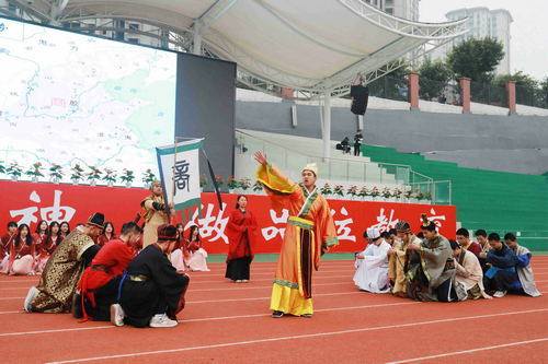 四川新闻网消息 “50个班级依次上演中华上下五千年的历史典故,让我仿佛在历史长河里遨游了一遍,不仅觉得意义非凡,更引起了我对中华历史的浓厚兴趣。”10月31日,在泸州市龙马高中第二届体育健身节开幕式上,七年级的学生袁皓轩在表演完《桃园结义》入场秀后笑着说。