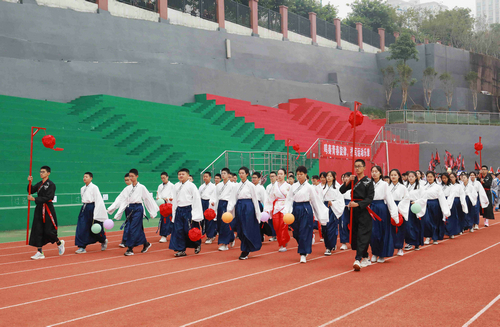 当日,泸州市龙马高中第二届体育健身节开幕,龙马高中5个年级近3000余名师生,共同演绎了一场以“跨越历史长河 看今朝盛世中华”为主题的创意花式开幕式,把传统文化融进运动会入场秀,尽展文化自信。